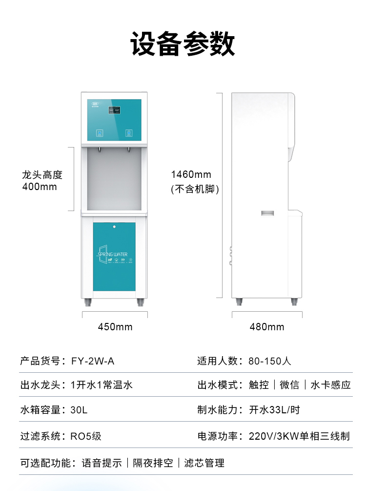 可选配功能:隔夜排空、语音提示、滤芯管理、远程监控